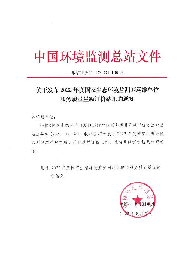 近期中國(guó)環(huán)境監(jiān)測(cè)總站根據(jù)《國(guó)家生態(tài)環(huán)境監(jiān)測(cè)網(wǎng)運(yùn)維單位服務(wù)質(zhì)量星級(jí)評(píng)價(jià)辦法》(總站業(yè)務(wù)字(2021)125 號(hào))工作已結(jié)束,經(jīng)過(guò)中國(guó)環(huán)境監(jiān)測(cè)總站嚴(yán)格的評(píng)審和公示《總站業(yè)務(wù)字〔2023〕109號(hào)》,公司參與國(guó)家生態(tài)環(huán)境監(jiān)測(cè)網(wǎng)運(yùn)維單位服務(wù)質(zhì)量四星級(jí)榮譽(yù)(同一星級(jí)運(yùn)維單位排名不分先后)。